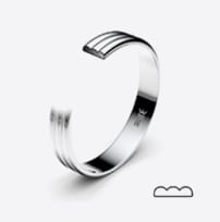 Trojvlnný snubní prsten jistě každého zaujme svým netradičním vzhledem. Vnitřní strana je plochá, vnější zahnutá s třemi vlnkami.