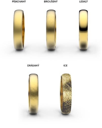 Každý snubní prsten z našich kolekcí je vyráběn s lesklým povrchem. Jestliže byste raději zvolili jiný typ povrchu, zavolejte na naši zákaznickou linku +420 485 110 116 nebo napište na info@danfil.sk, vaší objednávku upravíme podle vašeho přání.