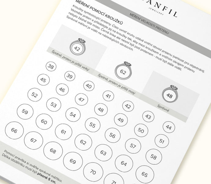 Veľkosť prsteňa ľahko zistíte pomocou našich PDF pomocníkov z pohodlia domova.