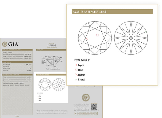 Takmer každý diamant vykazuje drobné "materské znamienka" nazývané inklúzie, ktoré vznikajú prirodzene pri vzniku diamantu hlboko v zemi. Tieto inklúzie pôsobia ako odtlačky prstov prírody a dávajú každému diamantu jeho jedinečný charakter. Vďaka týmto inklúziám vieme, že diamant je pravý a nie umelý.