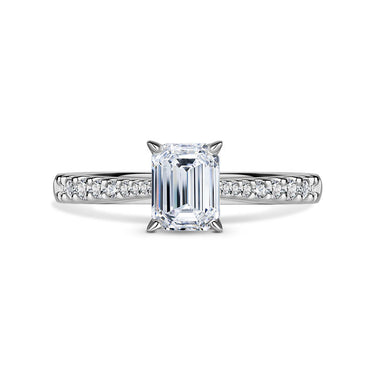 Originálny zásnubný prsteň je vyrobený z bieleho 14 karátového zlata so stredovým diamantom smaragdového brusu s hmotnosťou 1.000ct usadeným v štyroch krapniach. Jemná obrúčka je posiata ďalšími celkom 18 briliantmi s celkovou hmotnosťou 1.186ct. Šperk je uložený v luxusnej darčekovej krabičke spolu s certifikátom pravosti.