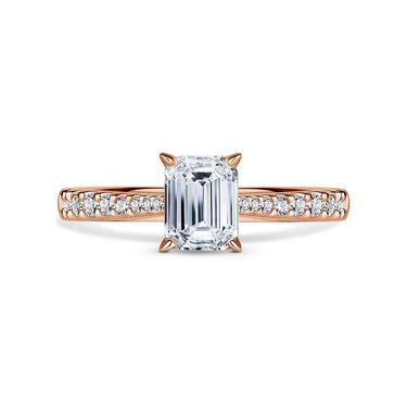 Originálny zásnubný prsteň je vyrobený z ružového 14 karátového zlata so stredovým diamantom smaragdového brusu s hmotnosťou 1.000ct usadeným v štyroch krapniach. Jemná obrúčka je posiata ďalšími celkom 18 briliantmi s celkovou hmotnosťou 1.186ct. Šperk je uložený v luxusnej darčekovej krabičke spolu s certifikátom pravosti.