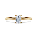 Jedinečný zásnubný prsteň je vyrobený zo žltého 14 karátového zlata so stredovým diamantom smaragdového brusu s hmotnosťou 0.7 ct usadeným v štyroch krapnách. Jemná obrúčka sa smerom k stredovému diamantu zužuje a dáva vyniknúť jagavému osmihrannému drahokamu. Šperk je uložený v luxusnej darčekovej krabičke spolu s certifikátom pravosti.
