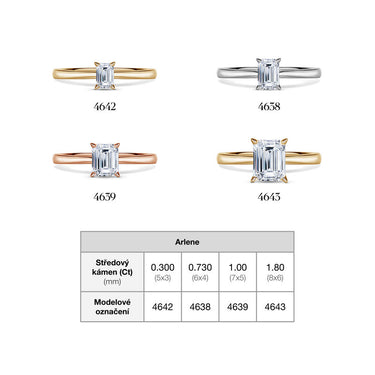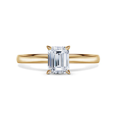 Jedinečný zásnubný prsteň je vyrobený zo žltého 14 karátového zlata so stredovým diamantom smaragdového brusu s hmotnosťou 1.0 ct usadeným v štyroch krapnách. Jemná obrúčka sa smerom k stredovému diamantu zužuje a dáva vyniknúť jagavému osmihrannému drahokamu. Šperk je uložený v luxusnej darčekovej krabičke spolu s certifikátom pravosti.
