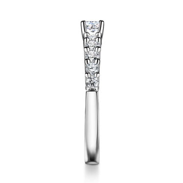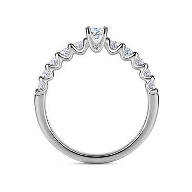 Zásnubný prsteň je vyrobený z bieleho 14 karátového zlata so stredovým diamantom okrúhleho brusu o váhe 0.145 ct. Z každej strany korunky je vsadený jeden malý briliant ako originálny na prvý pohľad ukrytý detail. V masívnejšie obruči je vsadené ďalších 10 diamantov okrúhleho brusu, celková hmotnosť kameňov v šperku je 0.599 ct. Šperk je uložený v luxusnej darčekovej krabičke spolu s certifikátom pravosti.