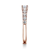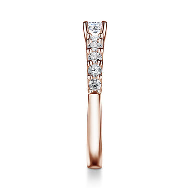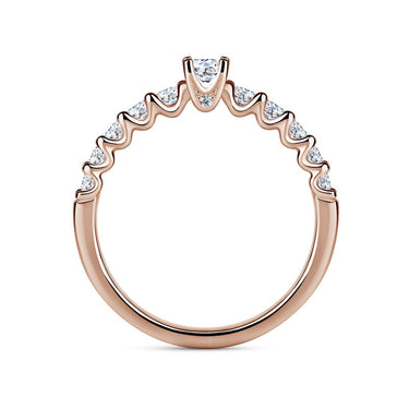 Zásnubný prsteň je vyrobený z ružového 14 karátového zlata so stredovým diamantom okrúhleho brusu o váhe 0.145 ct. Z každej strany korunky je vsadený jeden malý briliant ako originálny na prvý pohľad ukrytý detail. V masívnejšie obruči je vsadené ďalších 10 diamantov okrúhleho brusu, celková hmotnosť kameňov v šperku je 0.599 ct. Šperk je uložený v luxusnej darčekovej krabičke spolu s certifikátom pravosti.