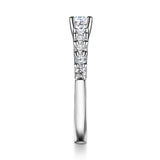 Zásnubný prsteň je vyrobený z bieleho 14 karátového zlata so stredovým diamantom okrúhleho brusu o váhe 0,25 ct. Z každej strany korunky je vsadený jeden malý briliant ako originálny na prvý pohľad ukrytý detail. V masívnejšie obruči je vsadené ďalších 10 diamantov okrúhleho brusu, celková hmotnosť kameňov v šperku je 0.712 ct. Šperk je uložený v luxusnej darčekovej krabičke spolu s certifikátom pravosti.