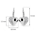 Jemné dámske náušnice v tvare srdca sú vyrobené zo 14k bieleho zlata a vykladané bielymi kamienkami. Vyberte si so svojou malou princeznou rovnaké náušnice z našej novej kolekcie pre mamičku a dcéru a vytvorte nerozlučnú dvojku.