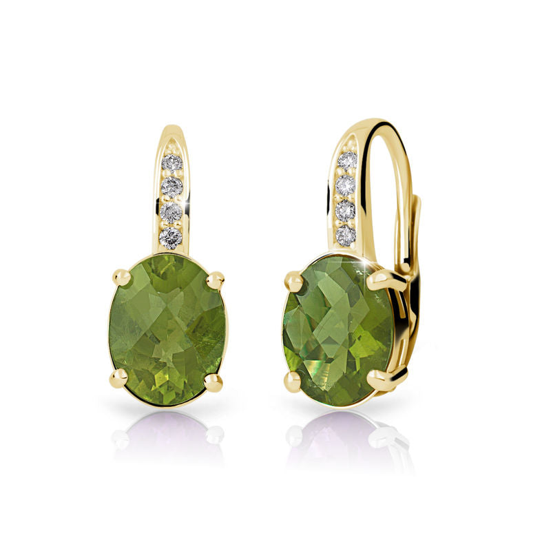 Dámské náušnice DF 3379 ze žlutého zlata, vltavín a diamanty