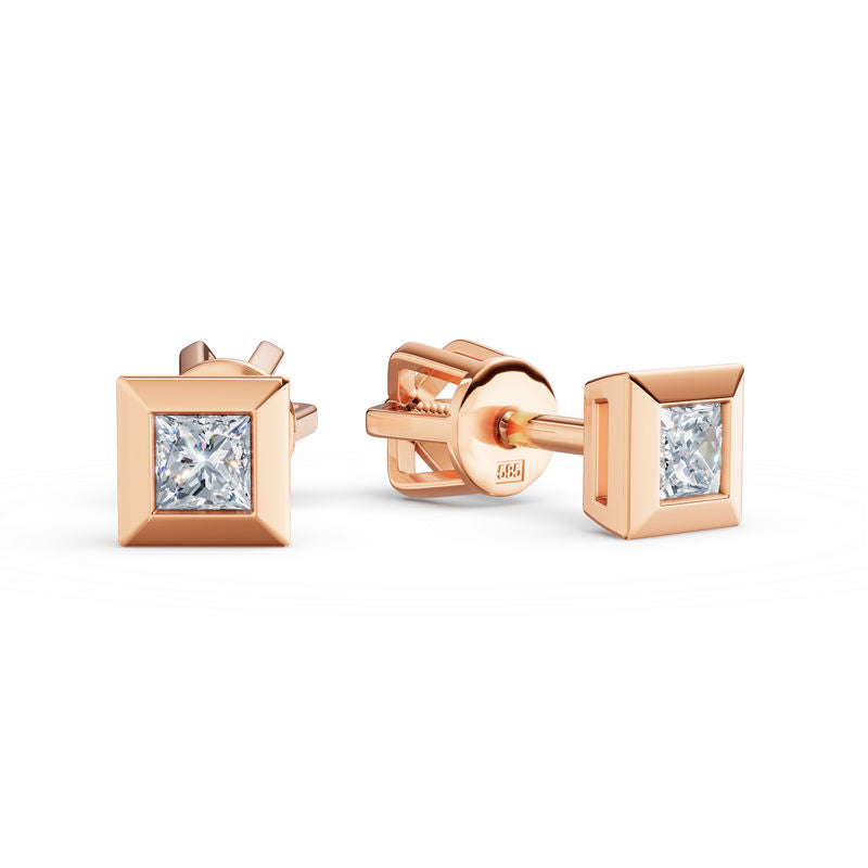Elegantné a nadčasové náušnice zo 14-karátového ružového zlata spájajú klasickú krásu s jemnou rafinovanosťou. Každý kameň je diamant v tvare princeznej, kvality SI1, farby G, s hmotnosťou 0,100 ct, s celkovou hmotnosťou 0,200 ct, ktorý dodáva šperkom decentný lesk a luxusný charakter. Lesklý povrch, precízne spracovanie a pohodlné balónové zapínanie zaručujú pohodlné nosenie a elegantný vzhľad na každú príležitosť. Náušnice sa dodávajú v luxusnej darčekovej krabičke spolu s certifikátom pravosti - ideálna voľba pre ženy, ktoré hľadajú klasický, jemný a nadčasový šperk.