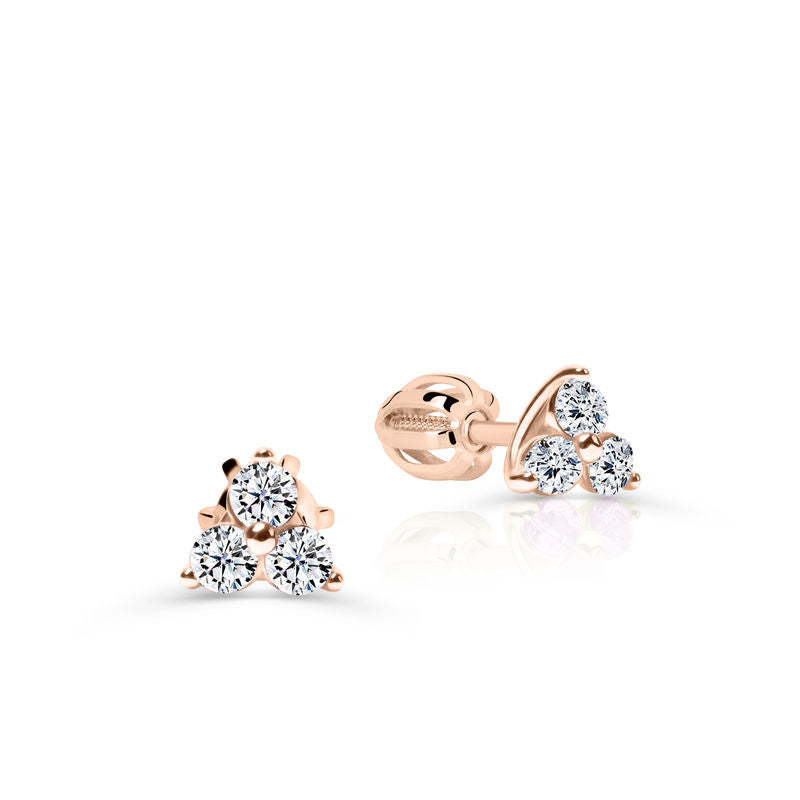 Jemné a ženské náušnice ze 14 karátového růžového zlata okouzlí teplým odstínem zlata a třpytem diamantů. Šperk je zdoben 6 brilianty kulatého brusu, kvality SI1, barvy G a excelentního brusu, o celkové váze 0.360 ct, které dodávají náušnicím sofistikovaný a luxusní charakter. Pohodlné zapínání typu balónek, lesklý povrch a precizní zpracování zaručují komfortní nošení a elegantní vzhled. Náušnice jsou uložené v luxusní dárkové krabičce a doplněny certifikátem pravosti - ideální volba pro ženy, které hledají nadčasový a jemně luxusní šperk.