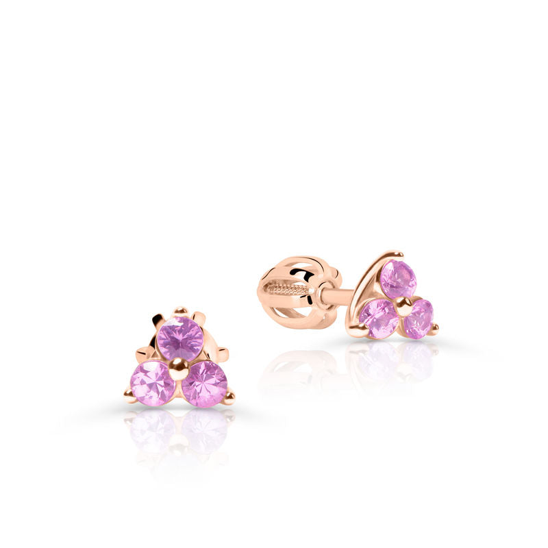 Jemné a ženské náušnice ze 14 karátového růžového zlata okouzlí romantickým odstínem zlata a třpytem safírů. Šperk je zdoben 6 růžovými safíry kulatého brusu o celkové váze 0.480 ct, které dodávají náušnicím luxusní a sofistikovaný charakter. Pohodlné zapínání typu balónek, lesklý povrch a precizní zpracování zaručují komfortní nošení a elegantní vzhled. Náušnice jsou uložené v luxusní dárkové krabičce a doplněny certifikátem pravosti – ideální volba pro ženy, které hledají romantický a nadčasový šperk.