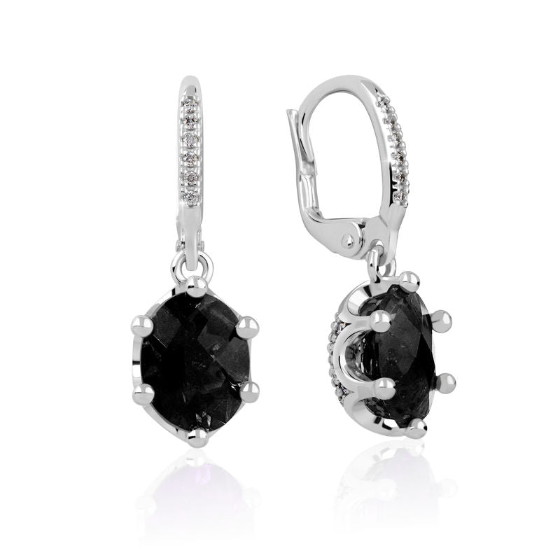 Elegantní a výrazné visací náušnice ze 14 karátového bílého zlata zaujmou sofistikovaným designem a nadčasovou elegancí. Dominantním prvkem je onyx ve šachovnicovém oválném brusu, doplněný třpytivými diamanty kvality SI1, barvy G a excelentního brusu, s celkovou váhou 4.31 ct, které dodávají náušnicím luxusní charakter a jemný třpyt.