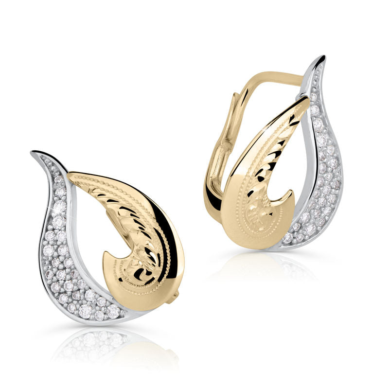Dámske náušnice Danfil Heritage s detailným ručným gravírovaním s briliantmi v kombinácii žltého a bieleho zlata 585/1000 s lesklým povrchom a zapínaním na klapku.