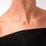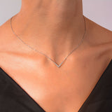 Krásny náhrdelník z bieleho 14-karátového zlata s 13 trblietavými diamantmi s okrúhlym briliantovým brusom a hmotnosťou 0,179 ct. Prívesok má snehobiely lesklý povrch. Šperk je uložený v luxusnej darčekovej krabičke spolu s certifikátom pravosti.