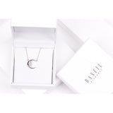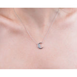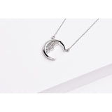 Krásny prívesok s motívom mesiaca s retiazkou z bieleho 14 karátového zlata zvýraznený 12 trblietavými briliantmi okrúhleho brusu o celkovej váhe 0.163 ct. Prívesok má snehovo biely lesklý povrch. Šperk je uložený v luxusnej darčekovej krabičke spolu s certifikátom pravosti.