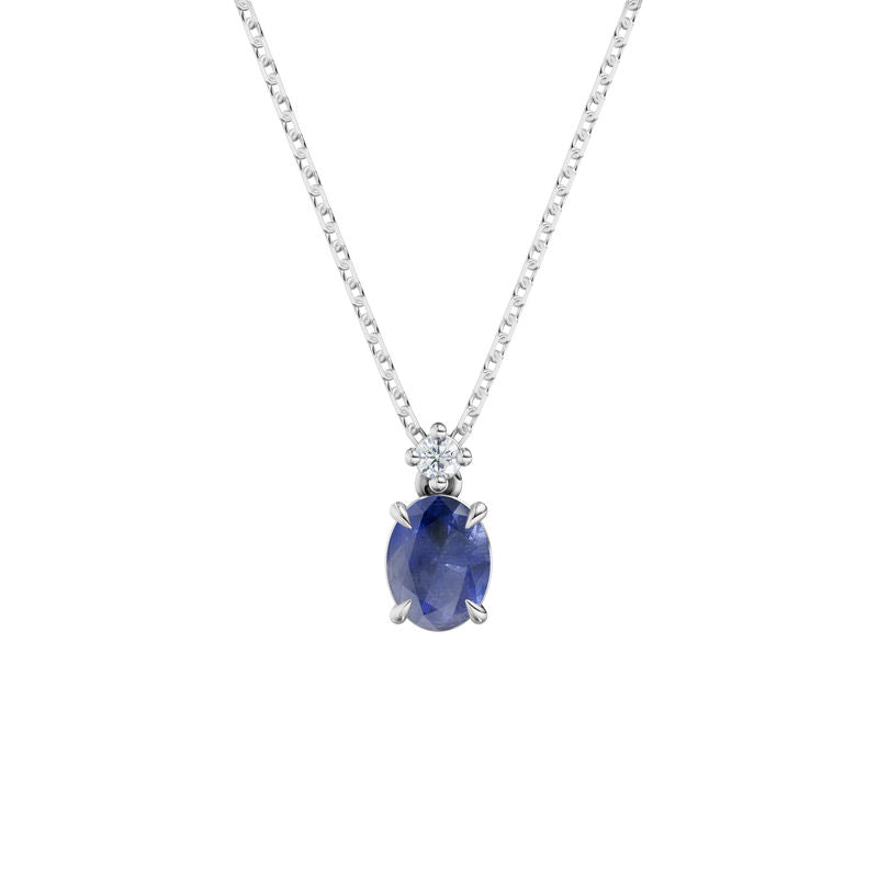 Elegantní a nadčasový přívěsek ze 14 karátového bílého zlata zaujme jemným, sofistikovaným designem a precizním zpracováním. Dominantou šperku je středový modrý safír v oválném brusu (Sapphire Blue Oval), doplněný jemným diamantem kvality SI1, barvy G s excelentním brusem. Celková váha kamenů je 0.735 ct, což přívěsku dodává luxusní třpyt a výrazný elegantní charakter. Precizní osazení a čisté linie designu zvýrazňují krásu drahokamů a podtrhují sofistikovanou eleganci přívěsku. Lesklý povrch zajišťuje, že šperk působí lehce, jemně a nadčasově. Přívěsek je uložen v luxusní dárkové krabičce a doplněn certifikátem pravosti. Možnost dokoupení vhodného řetízku umožňuje vytvořit dokonalý set vhodný pro každou příležitost
