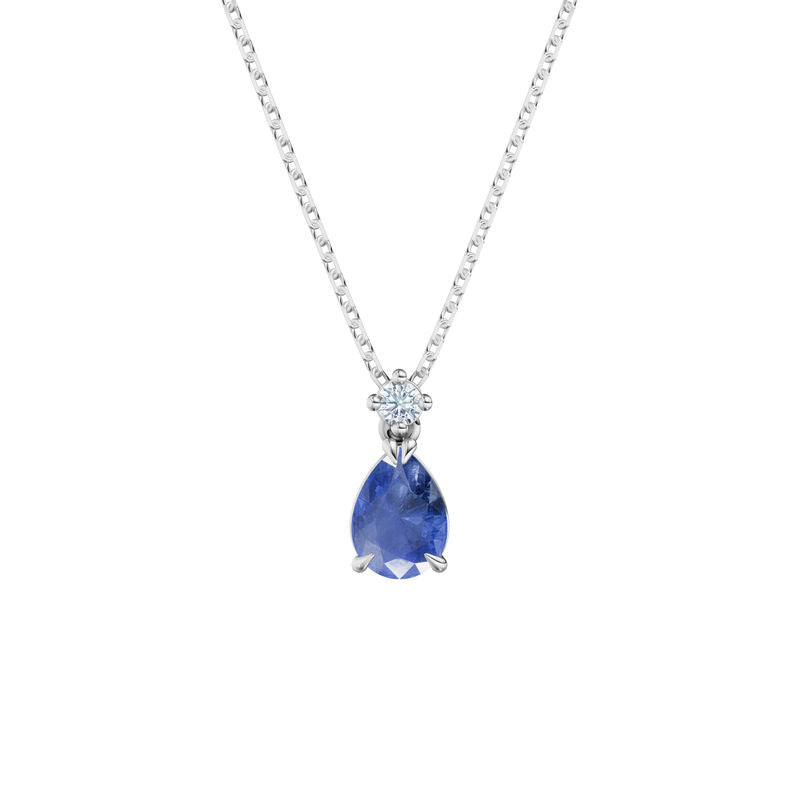 Dámský přívěsek DF 6157 včetně řetízku, z bílého zlata, s modrým safírem a diamantem