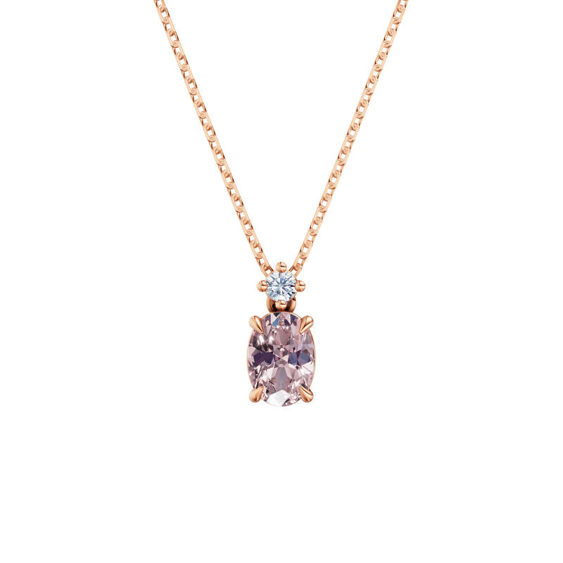 Elegantní a nadčasový přívěsek ze 14 karátového růžového zlata okouzlí jemnou ženskostí a sofistikovaným designem. Dominantou šperku je přírodní morganit oválného brusu, jehož něžný růžový odstín působí romanticky a luxusně. Kámen je doplněn jedním diamantem kvality SI1, barvy G s excelentním brusem, který šperku dodává jiskru a výjimečný třpyt. Celková hmotnost kamenů je 0.705 ct. Lesklý povrch a čisté linie zvýrazňují precizní zpracování i krásu drahokamů, díky čemuž přívěsek působí lehce, elegantně a nadčasově. Uložen v luxusní dárkové krabičce a doplněn certifikátem pravosti je perfektní volbou pro ženy, které milují jemné, ale výrazné šperky s osobitým šarmem. Možnost dokoupení řetízku.
