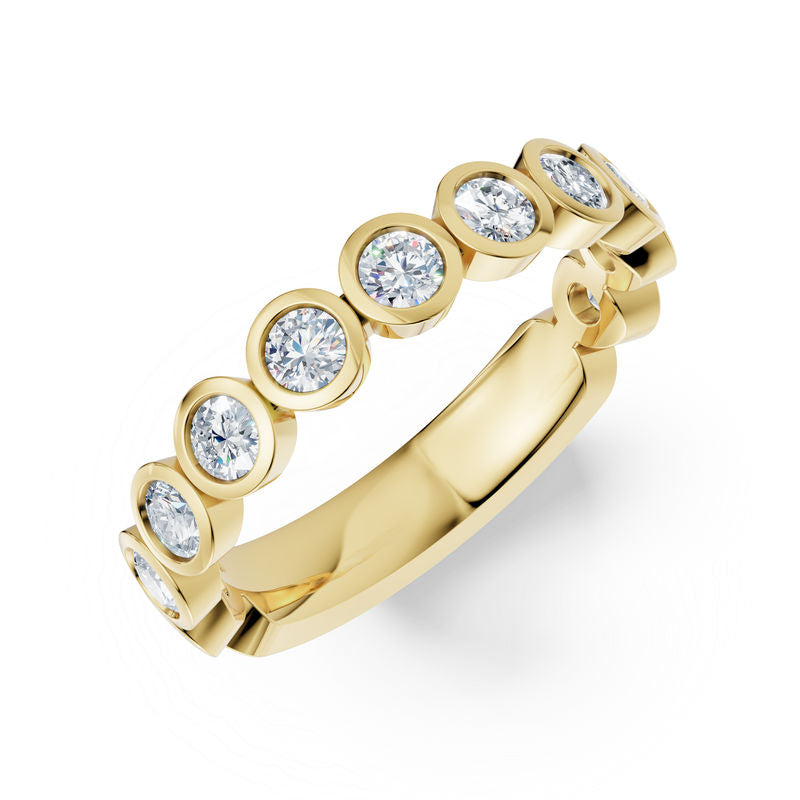 Objevte krásu dokonalosti s tímto diamantovým prstenem vyrobeným ze 14karátového zlata, zdobeným 11 třpytivými laboratorními brilianty kulatého brusu o celkové váze 0.946 ct. Elegantní lesklá obroučka dodává šperku nadčasový a luxusní vzhled. Prsten je uložen v luxusní dárkové krabičce společně s mezinárodním certifikátem pravosti.