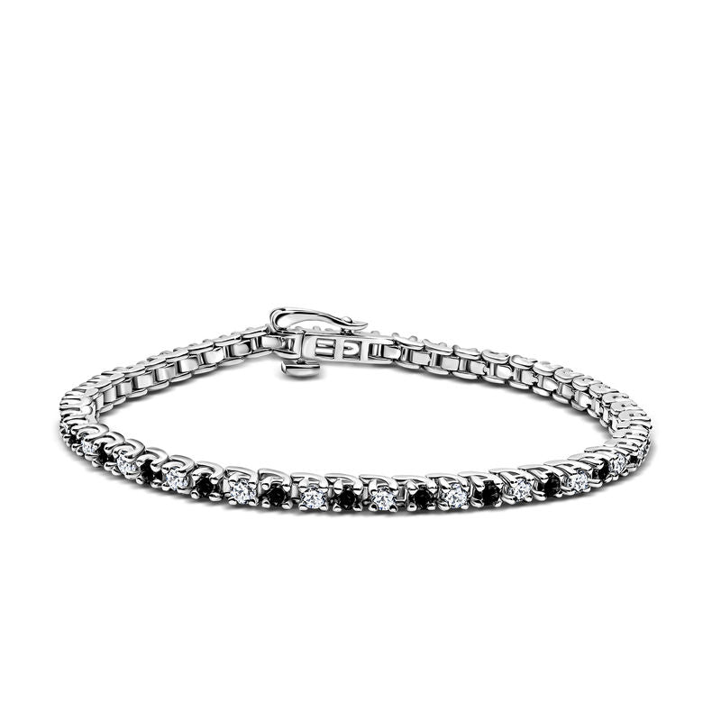 Dámsky tenisový náramok DF 2557 z bieleho zlata s bielymi a čiernymi diamantmi, veľkosť S