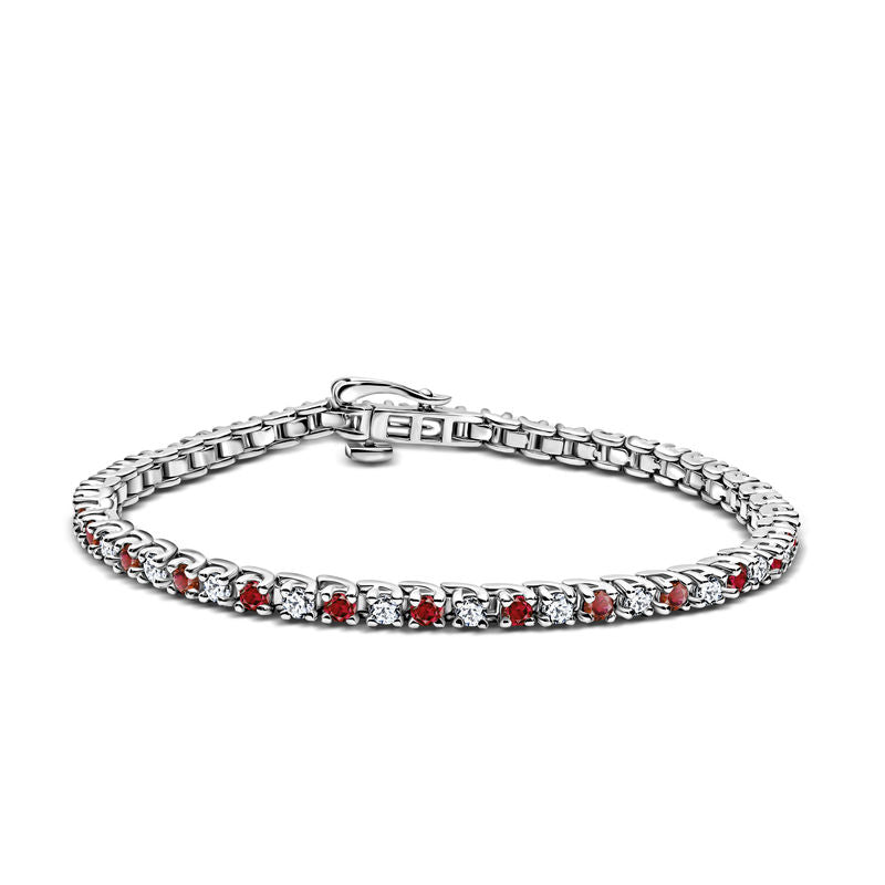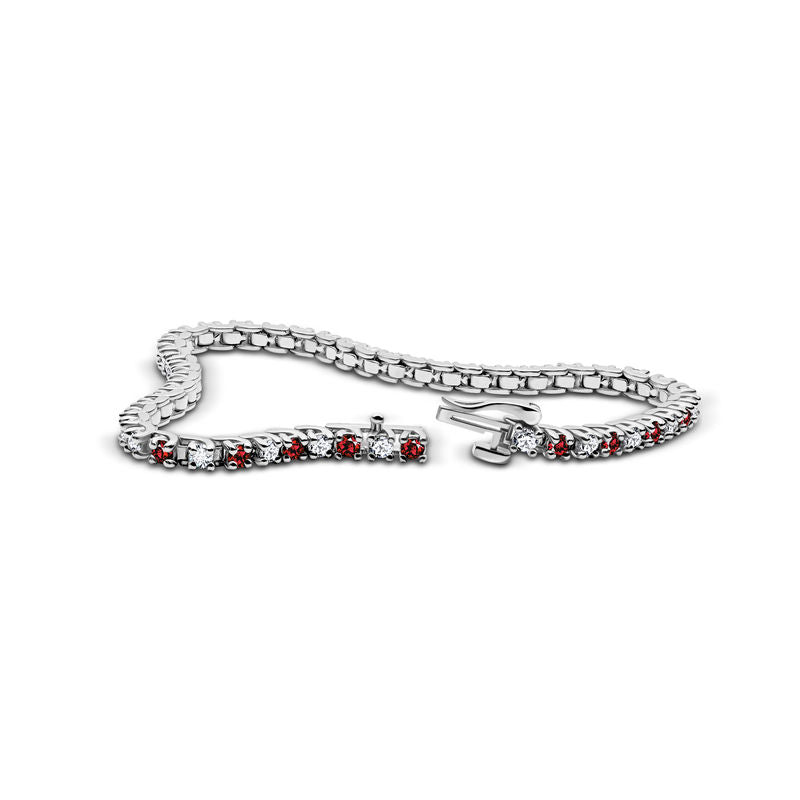 Dámsky tenisový náramok DF 2557 z bieleho zlata, s rubínmi a bielymi zafírmi, veľkosť L