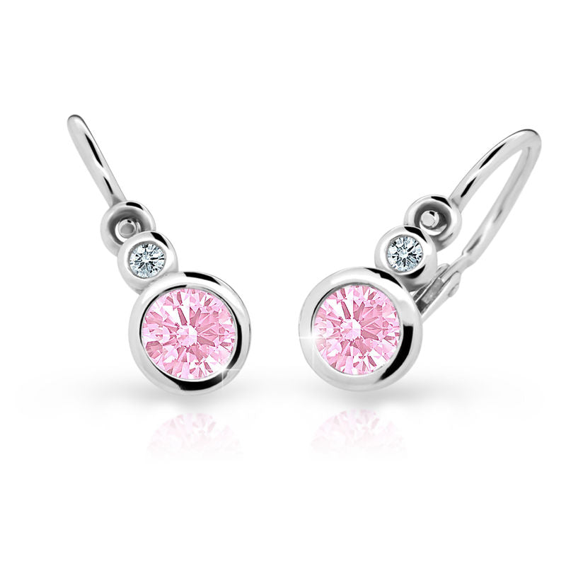 Detské náušnice Danfil C1984 z bieleho zlata, Pink, zapínanie brizura
