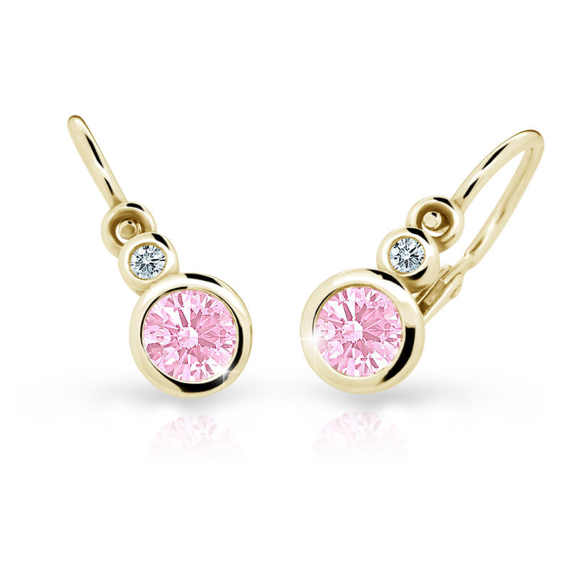 Detské náušnice Danfil C1984 zo žltého zlata, Pink, zapínanie brizura