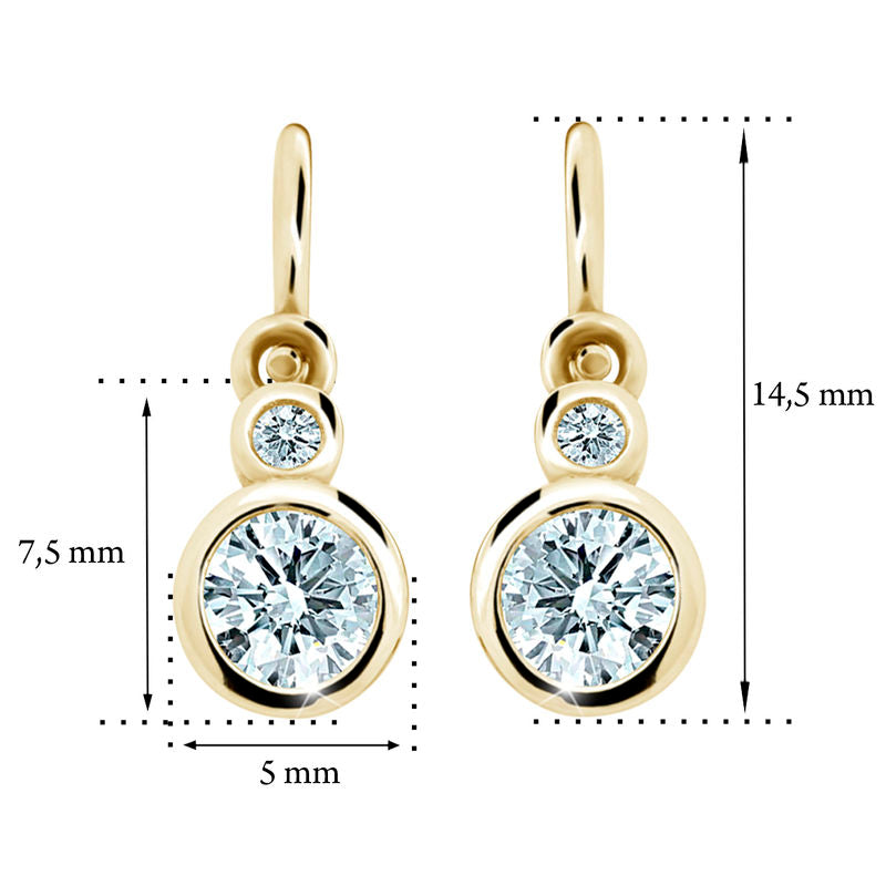 Detské náušničky v tvare klasik so zapínaním typu brizúra sú vyrobené z žltého 14k zlata a osadené svetlo ružovými zirkónmi. Zlaté náušnice majú puncovú značku 585/1000 od štátneho puncového úradu. Tento typ zapínania považujeme za jeden z najbezpečnejších a je najvhodnejší ako prvé náušničky pre bábätko. Všetky rozmery sú podrobne rozkreslené na podpornej fotografii. Ku každým náušničkám je možné vybrať si aj ladiaci prívesok s retiazkou.