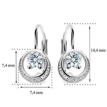 Detské náušničky v tvare klasik so zapínaním typu klapka sú vyrobené z bieleho 14k zlata a osadené červenými kamienkami. Zlaté náušnice majú puncovú značku 585/1000 od štátneho puncového úradu. Tento typ zapínania považujeme za jeden z najbezpečnejších a je najvhodnejší pre malé slečny vo veku od cca 5 rokov. Na tento typ zapínania je možné za príplatok umiestniť bezpečnosťou poistky. Všetky rozmery sú podrobne rozkreslené na podpornej fotografii. Ku každým náušničkám je možné vybrať si aj ladiaci prívesok s retiazkou.