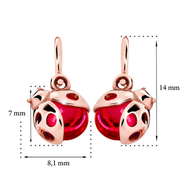 Detské náušnice Danfil C2008 lienky zo ružového zlata, Ruby Dark, zapínanie brizura