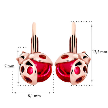 Detské náušnice Danfil C2008 lienky zo ružového zlata, Ruby Dark, zapínanie klapka