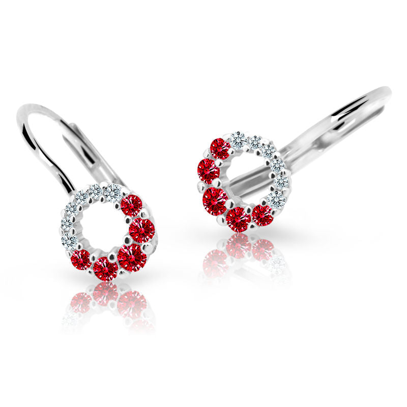 Detské náušnice Danfil C2154 z bieleho zlata, Ruby Dark, zapínanie klapka