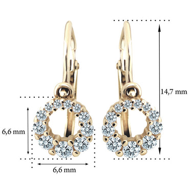 Detské náušničky v tvare klasik so zapínaním typu brizúra sú vyrobené z žltého 14k zlata a osadené svetlo ružovými zirkónmi. Zlaté náušnice majú puncovú značku 585/1000 od štátneho puncového úradu. Tento typ zapínania považujeme za jeden z najbezpečnejších a je najvhodnejší ako prvé náušničky pre bábätko. Všetky rozmery sú podrobne rozkreslené na podpornej fotografii. Ku každým náušničkám je možné vybrať si aj ladiaci prívesok s retiazkou.
