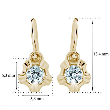 Detské náušničky v tvare klasik so zapínaním typu brizúra sú vyrobené z žltého 14k zlata a osadené svetlo ružovými zirkónmi. Tento typ zapínania považujeme za jeden z najbezpečnejších a je najvhodnejší ako prvé náušničky pre bábätko. Všetky rozmery sú podrobne rozkreslené na podpornej fotografii. Ku každým náušničkám je možné vybrať si aj ladiaci prívesok s retiazkou.