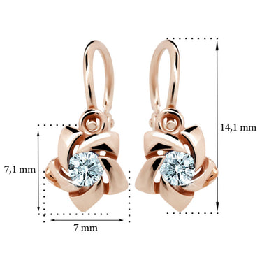 Detské náušnice Danfil C2201 zo ružového zlata, Ruby Dark, zapínanie brizura