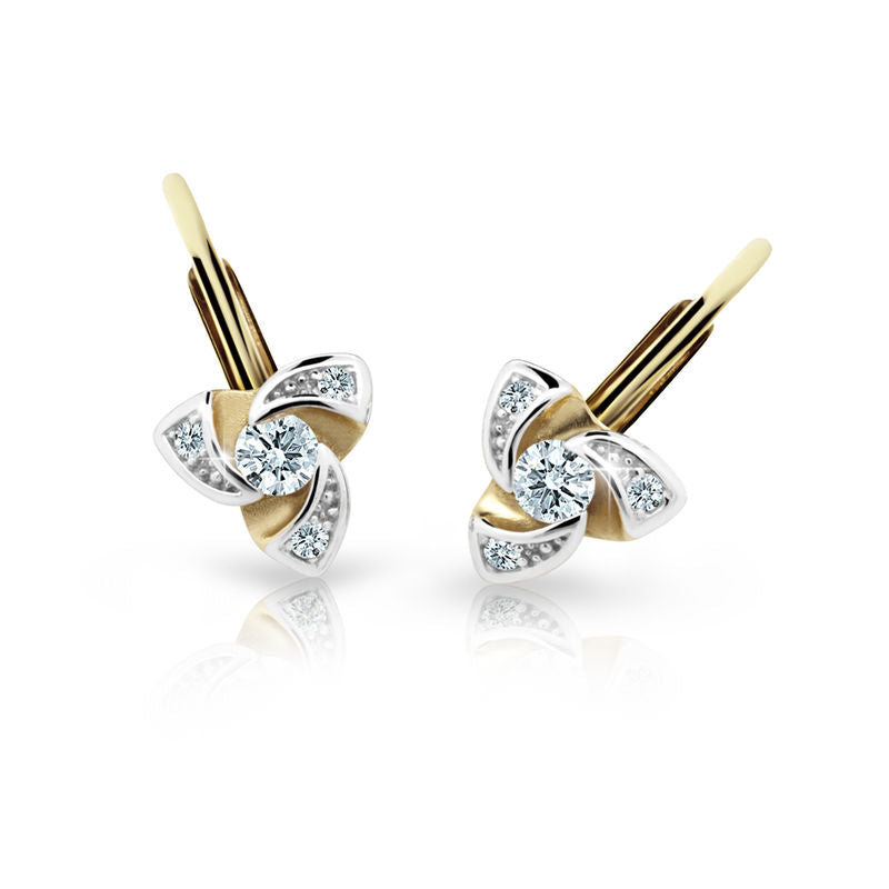 Detské náušnice Danfil C2203 zo žltého zlata, White, zapínanie klapka