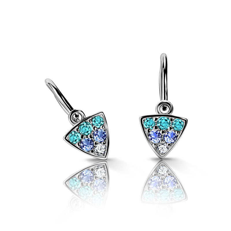 Detské náušnice Danfil C2207 z bieleho zlata s mätovými, svetlomodrými a bielymi kamienkami, mosadzné zapínanie