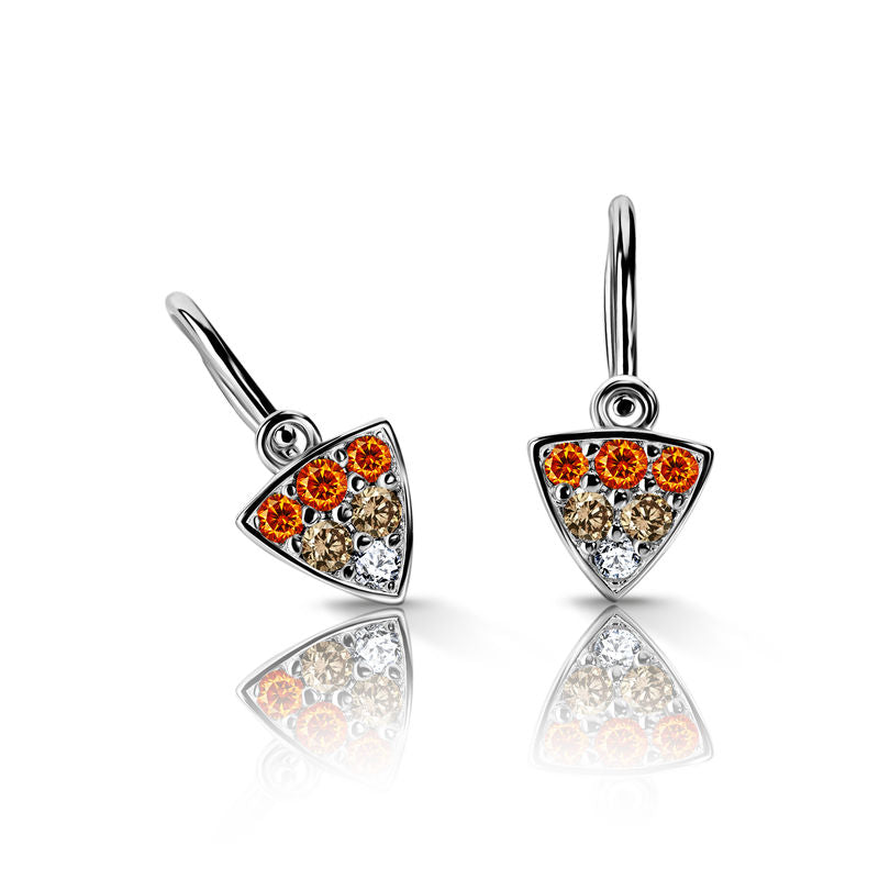 Detské náušnice Danfil C2207 z bieleho zlata s oranžovými, peridotovo zelenými a bielymi kamienkami, brizúrové zapínanie