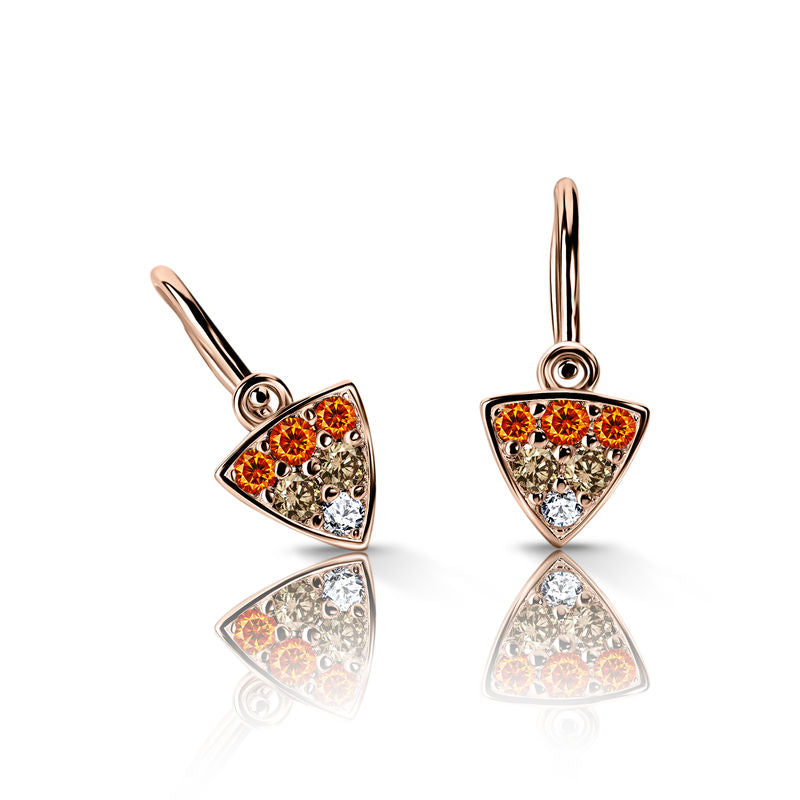 Detské náušnice Danfil C2207 z ružového zlata s oranžovými, peridotovo zelenými a bielymi kamienkami, brizúrové zapínanie
