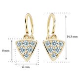 Detské náušnice v tvare klasiky so zapínaním na puzetu sú vyrobené zo žltého 14-karátového zlata a posiate dúhovými kamienkami. Zlaté náušnice sú označené puncovou značkou 585/1000 štátneho puncového úradu. Tento typ zapínania považujeme za jeden z najbezpečnejších a je najvhodnejší ako prvé detské náušnice. Všetky rozmery sú podrobne uvedené na spodnej fotografii. Ku každej náušnici si môžete vybrať vhodný prívesok na retiazku.