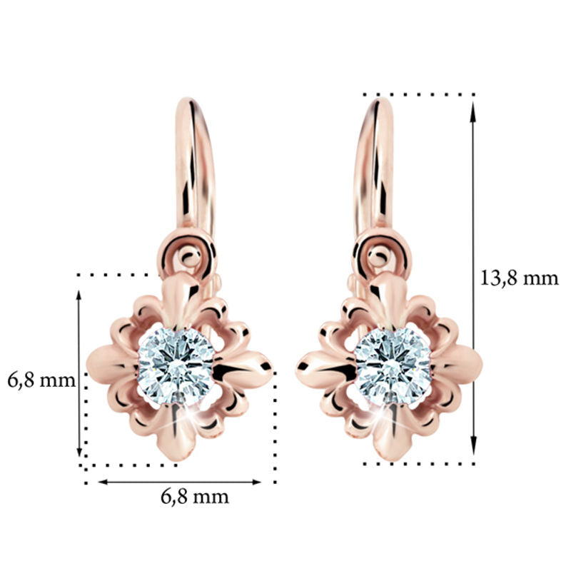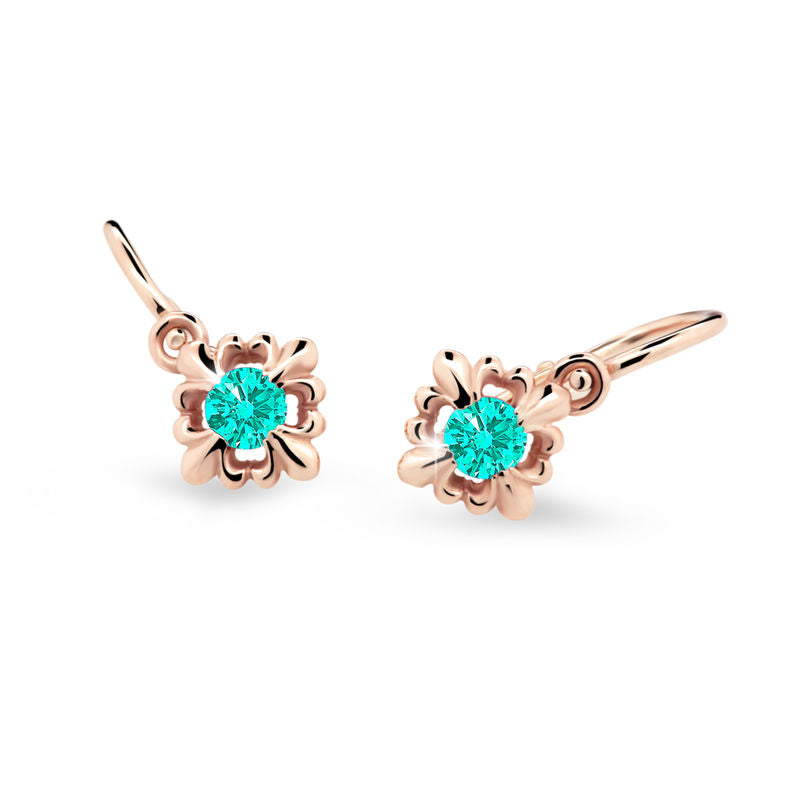 Detské náušnice Danfil C2212 zo ružového zlata, Mint Green, zapínanie brizura