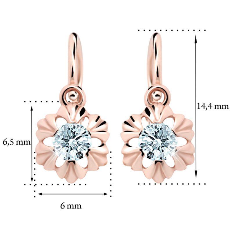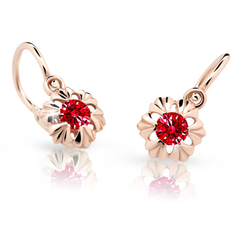 Detské náušnice Danfil C2213 zo ružového zlata, Ruby Dark, zapínanie brizura