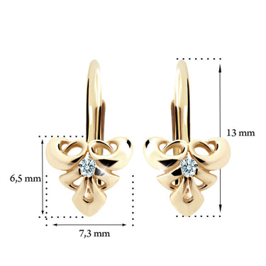 Detské náušnice Danfil C2214 zo žltého zlata, White, zapínanie klapka