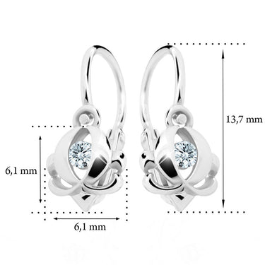 Detské náušničky v tvare klasik so zapínaním typu brizúra sú vyrobené z bieleho 14k zlata a osadené tmavo zelenými kamienkami. Zlaté náušnice majú puncovú značku 585/1000 od štátneho puncového úradu. Tento typ zapínania považujeme za jeden z najbezpečnejších a je najvhodnejší ako prvé náušničky pre bábätko. Všetky rozmery sú podrobne rozkreslené na podpornej fotografii. Ku každým náušničkám je možné vybrať si aj ladiaci prívesok s retiazkou.