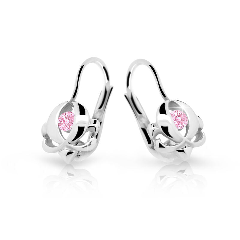 Detské náušnice Danfil C2218 z bieleho zlata, Pink, zapínanie klapka