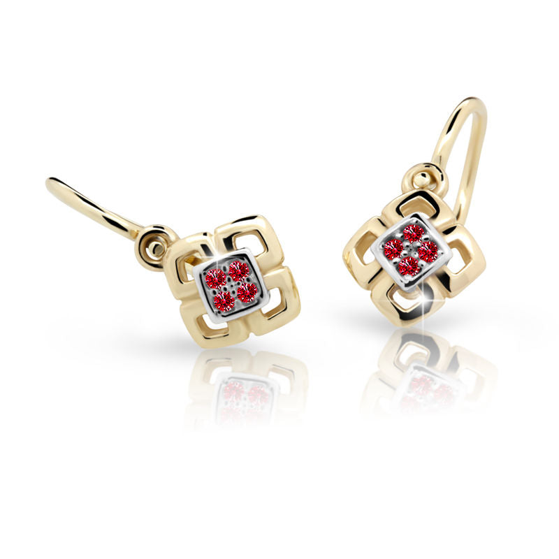 Detské náušnice Danfil C2240 zo žltého zlata, Ruby Dark, zapínanie brizura
