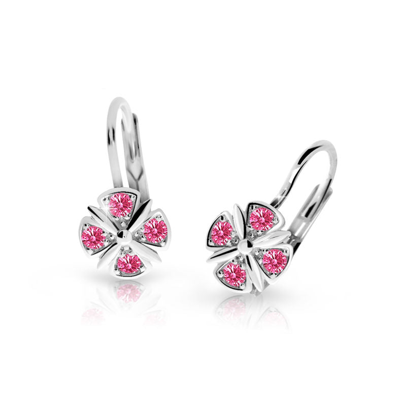 Detské náušničky v tvare klasik so zapínaním typu klapka sú vyrobené z bieleho 14k zlata a osadené malinovými kamienkami. Zlaté náušnice majú puncovú značku 585/1000 od štátneho puncového úradu. Tento typ zapínania považujeme za jeden z najbezpečnejších a je najvhodnejší pre malé slečny vo veku od cca 5 rokov. Na tento typ zapínania je možné za príplatok umiestniť bezpečnosťou poistky. Všetky rozmery sú podrobne rozkreslené na podpornej fotografii. Ku každým náušničkám je možné vybrať si aj ladiaci prívesok s retiazkou.