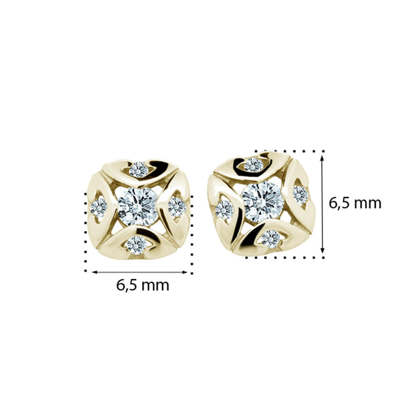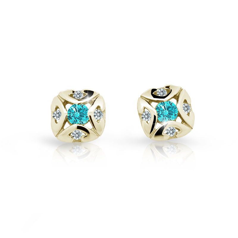 Detské náušničky v tvare klasik so zapínaním typu balónik sú vyrobené z žltého 14k zlata a osadené tyrkysovými zirkónmi. Zlaté náušnice majú puncovú značku 585/1000 od štátneho puncového úradu. Zapínanie je vhodné až od 6 mesiacov. Všetky rozmery sú podrobne rozkreslené na podpornej fotografii. Ku každým náušničkám je možné vybrať si aj ladiaci prívesok s retiazkou.