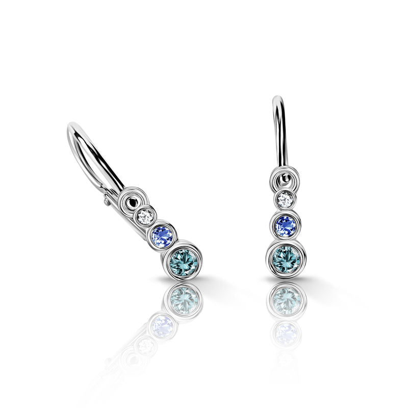 Detské náušnice Danfil C2255 z bieleho zlata s mätovými, svetlomodrými a bielymi kamienkami, brizúrové zapínanie